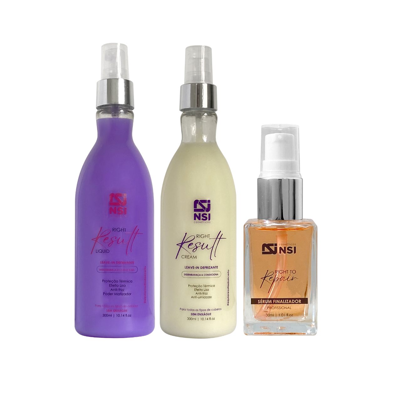 O Right Result Cream e Liquid Leave-in defrizante foi desenvolvido especialmente para o cuidado dos fios, possui uma fórmula exclusiva e com ingredientes de alta performance, que promove brilho intenso, cabelos macios, proteção térmica, efeito liso e ação anti-frizz.