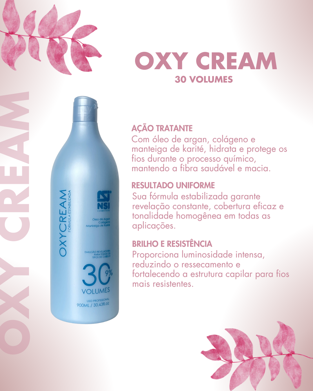 Elaborada com as melhores matérias primas existentes no mercado, nossa OXY Cream garante resultados perfeitos no processo de descoloração e coloração. Sua fórmula ultra cremosa, garante que o pigmento da coloração ou o pó descolorante penetre com mais eficiência proporcionando cores incríveis aos cabelos. Contém óleo de argan, colágeno e manteiga de karité, emolientes especiais para processos químicos, que além de hidratar, fornecem brilho e evitam o ressecamento e oxidação dos fios.
