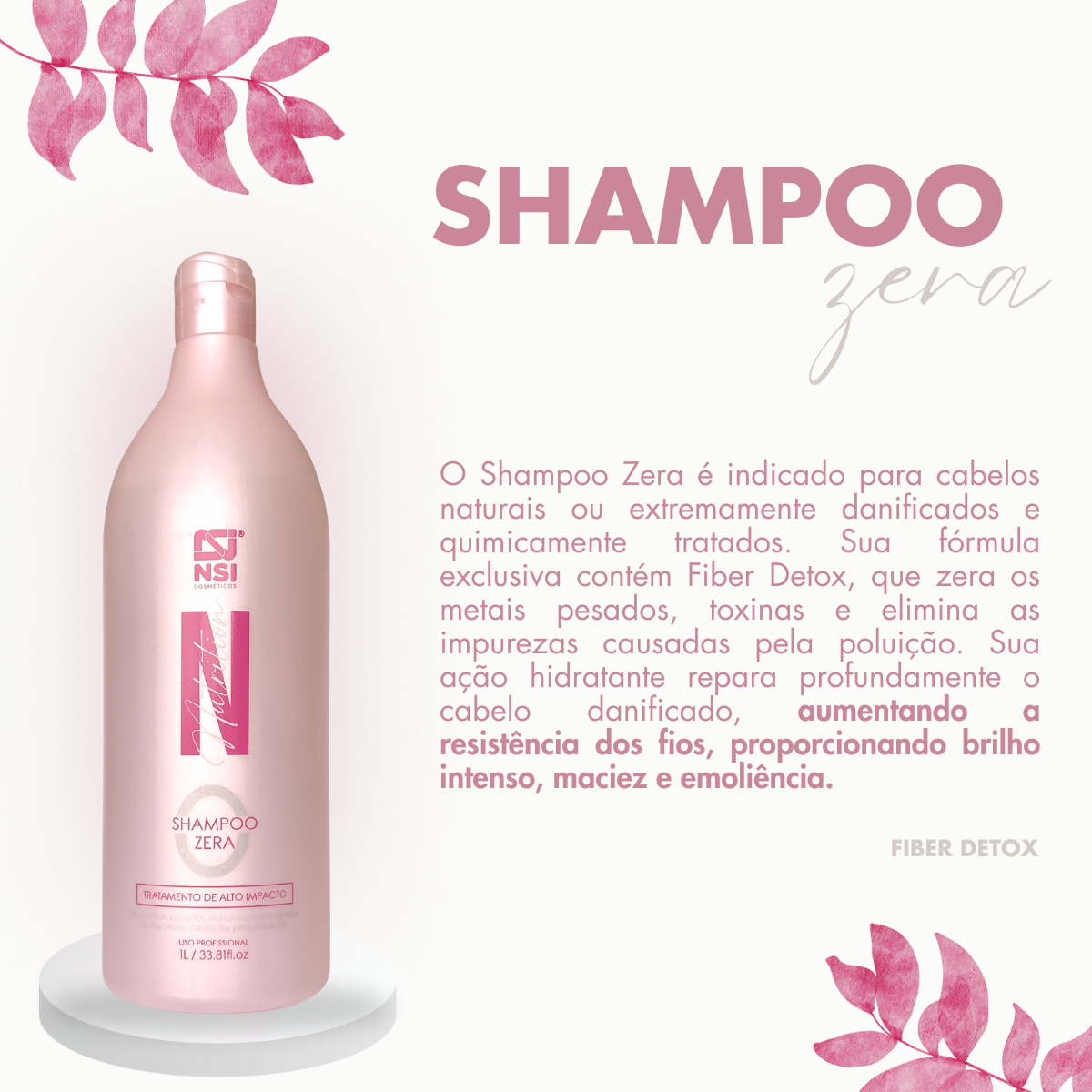 A Linha NSI é um tratamento de alto impacto, que recupera profundamente os cabelos danificados em apenas três etapas. Possui ação que neutraliza os odores de amônia, recomendado nos processos de pré o pós coloração e descoloração. O Shampoo Zera é indicado para cabelos naturais ou extremamente danificados e quimicamente tratados. Sua fórmula exclusiva contém Fiber Detox, que zera os metais pesados, toxinas e elimina